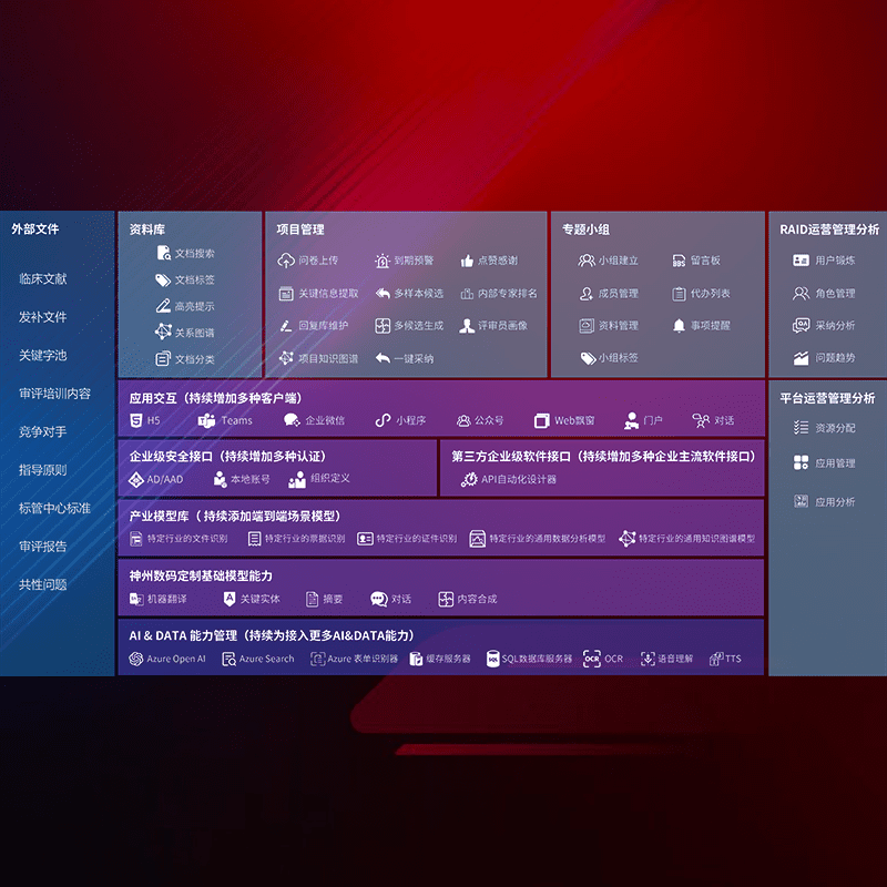 医疗器械产品上市前,,,要熟悉严格与繁复评审标准,,整理分析监管机构指导文件中的海量信息。。。。企业急需一个智能化解决方案,,,,提升知识管理效率,,,提高评审通过率,,,以提升其市场竞争力。。。。